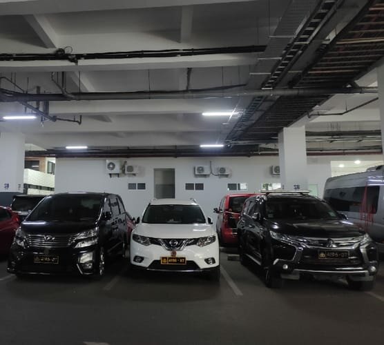 lima mobil itu berjejer dengan merek berbeda dan warna yang berbeda pula. Kelimanya terparkir di basement dengan nomor tempat parkir (SB).